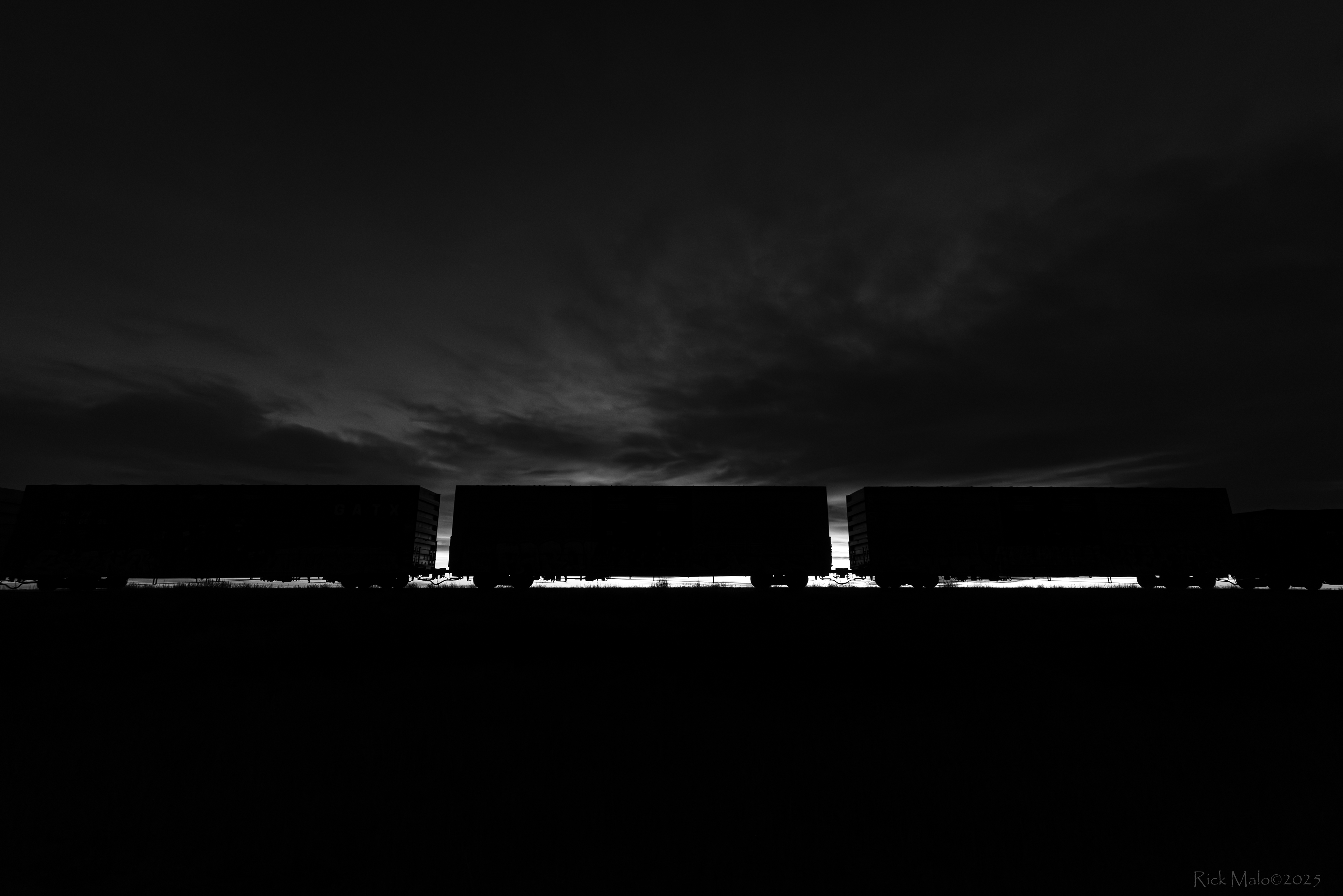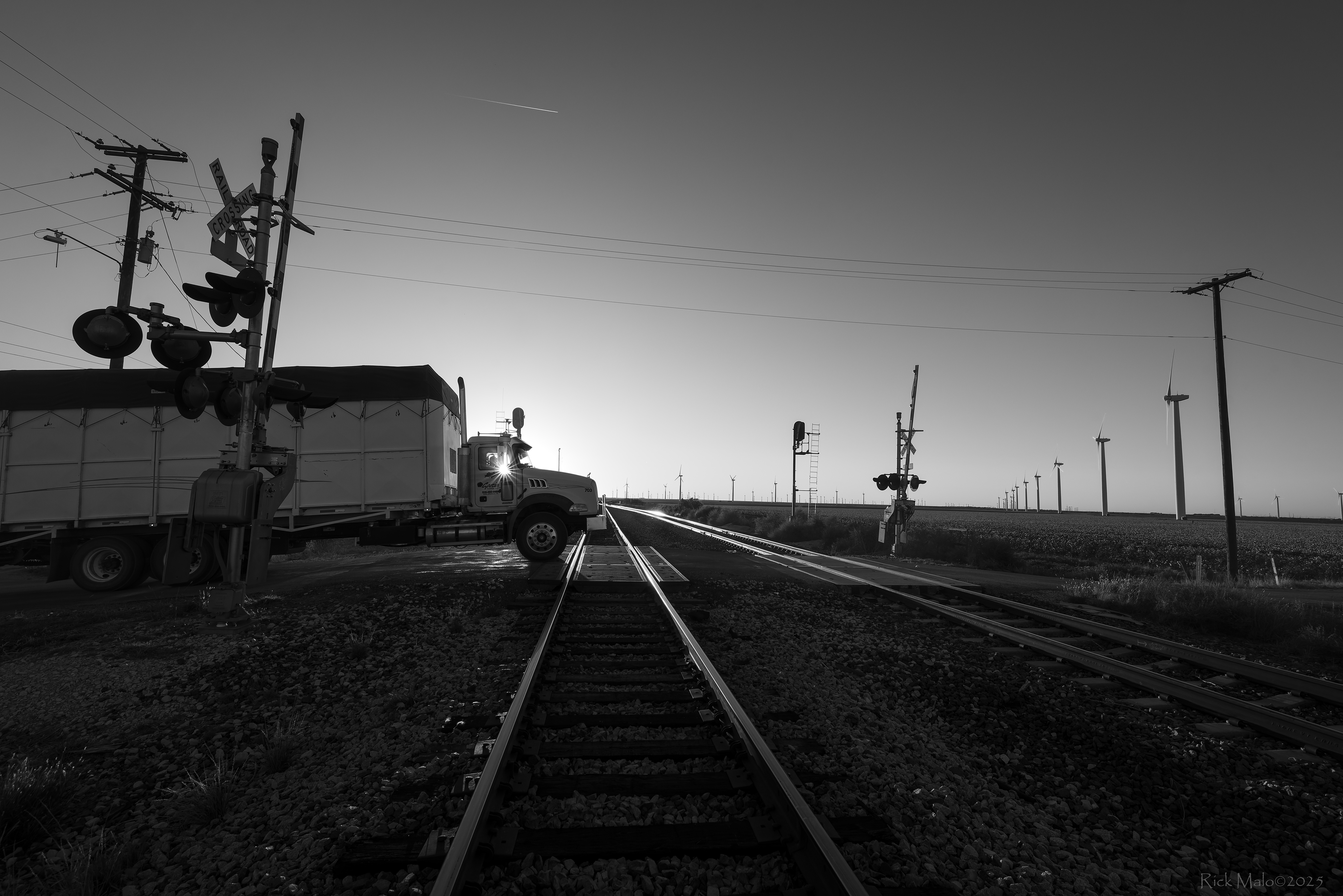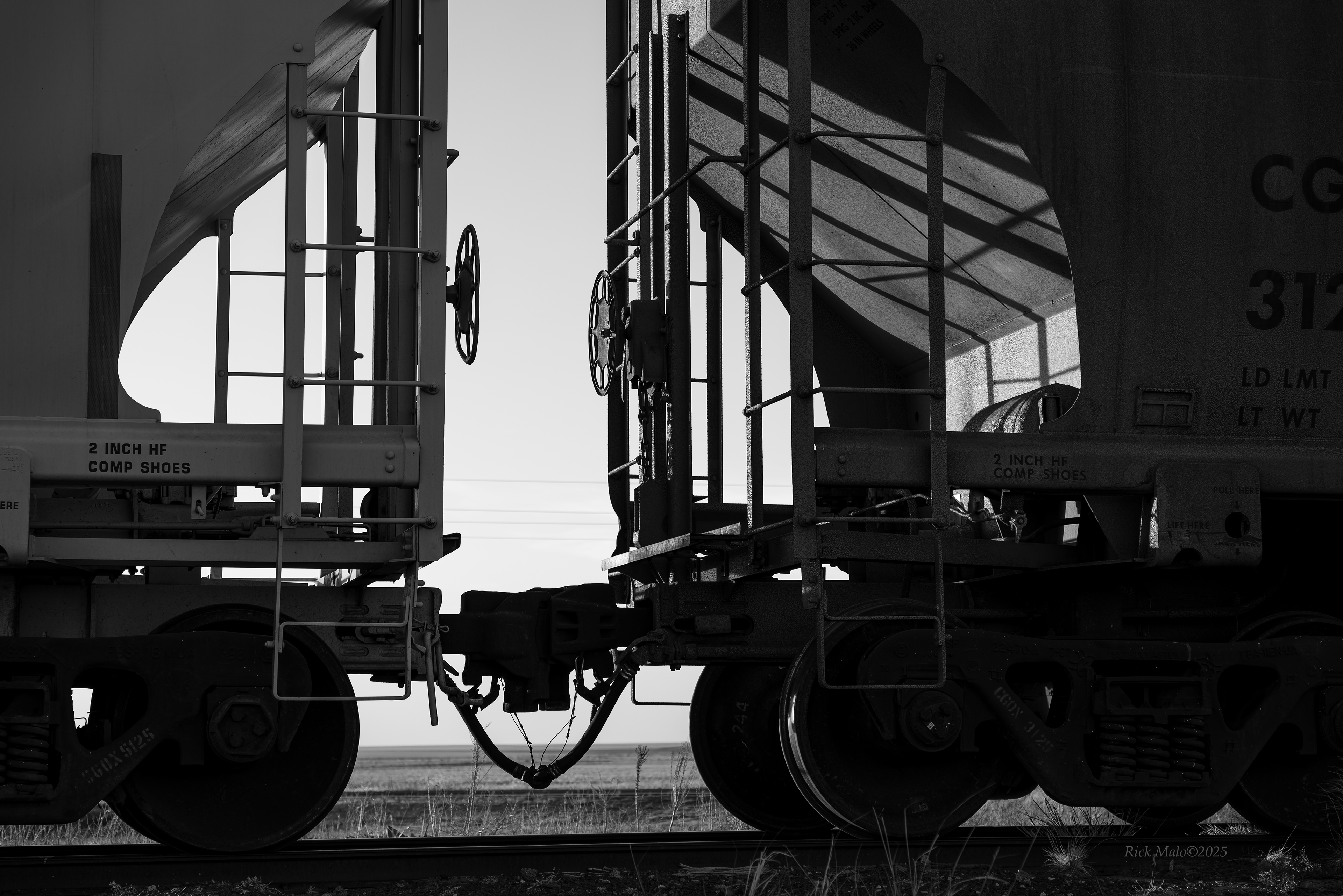 Our northbound empty coal train rolls past an ancient car at Kress, Texas.