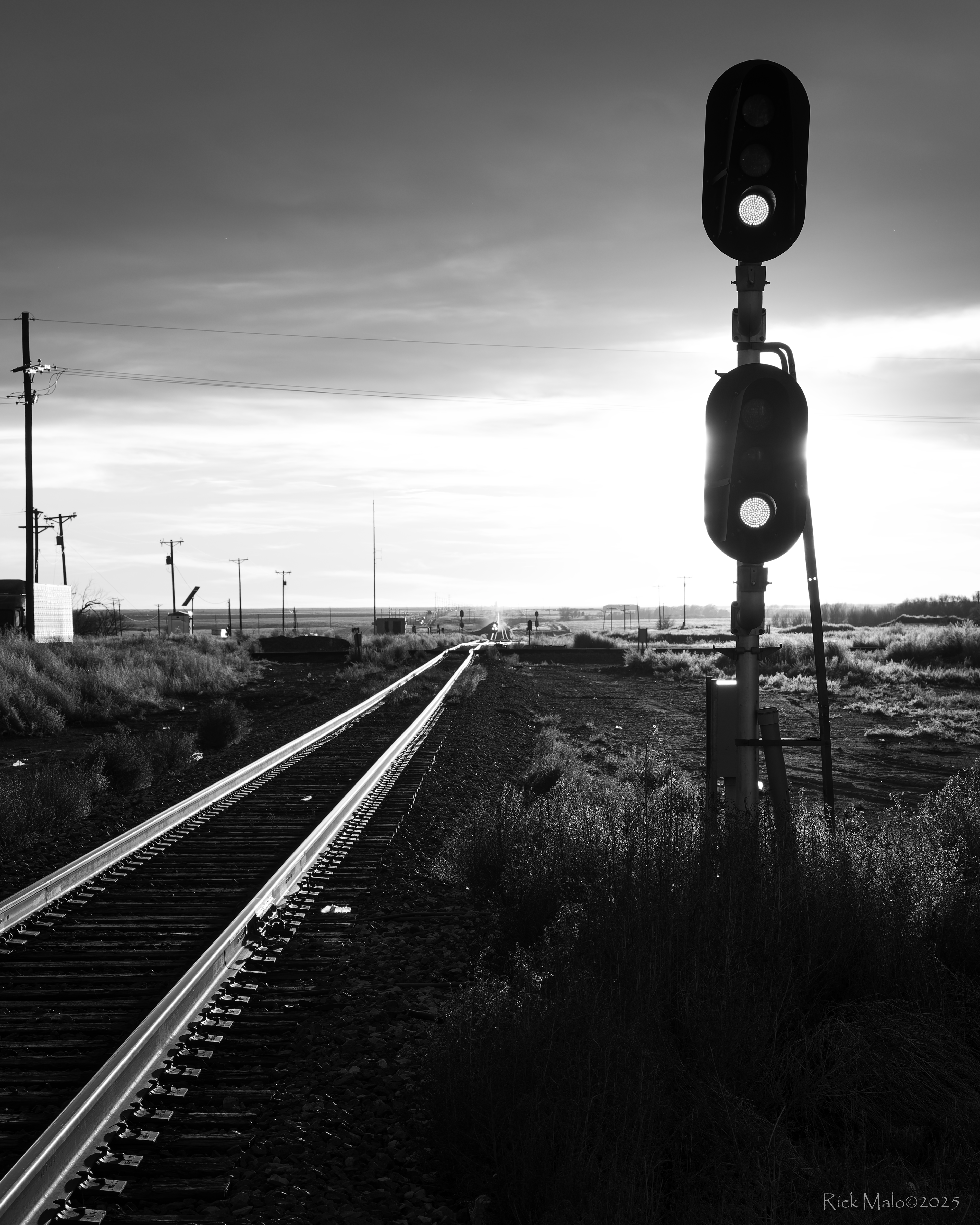 A westbound Union Pacific manifest freight rolls past a lone code line pole out on the Chihuahuan Desert near Pyote, Texas on the old T&P mainline.
