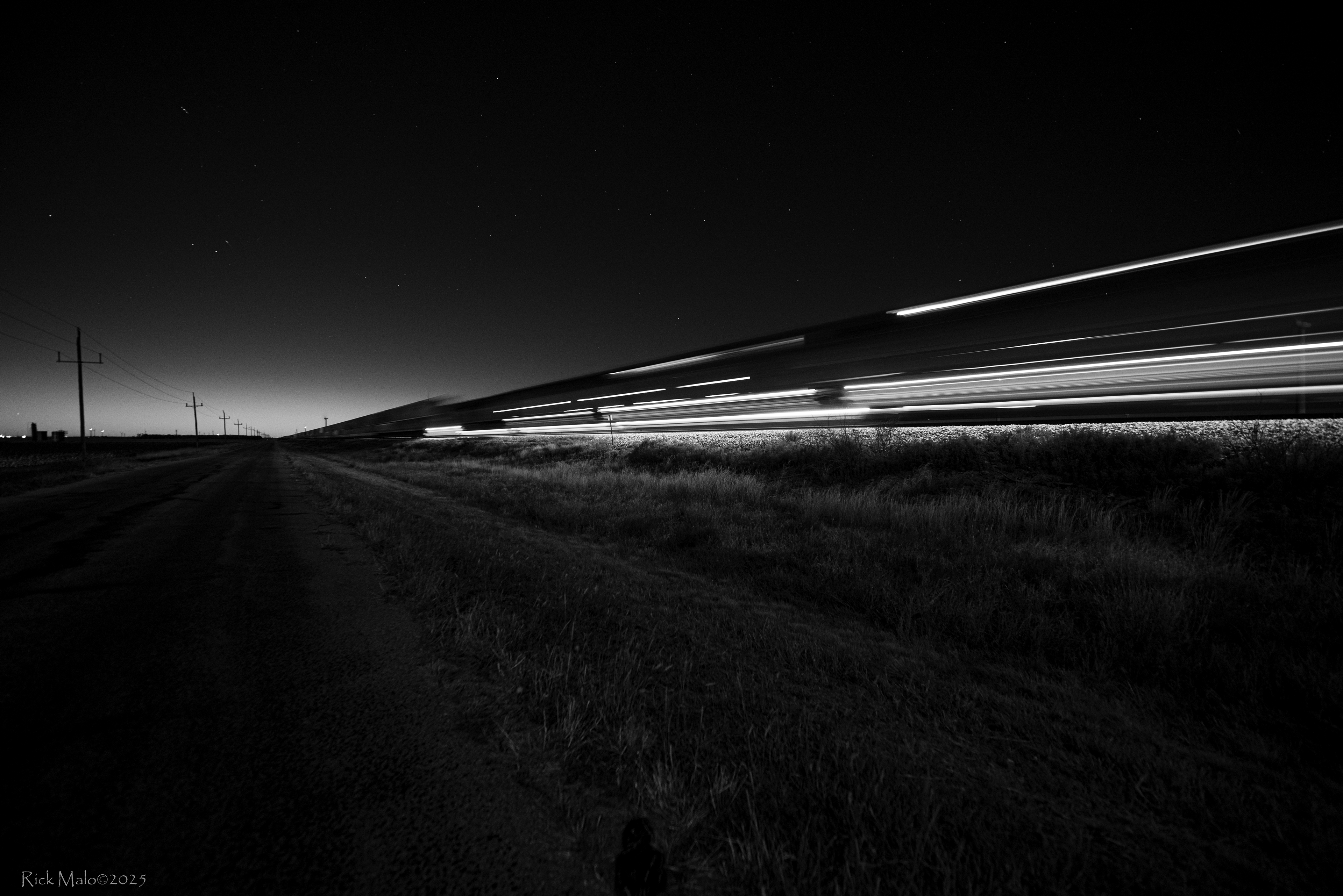 6 miles to the west a headlight finally shines over the crest of Loraine Hill, then the blare of distant trumpets rolls over the South Plains.